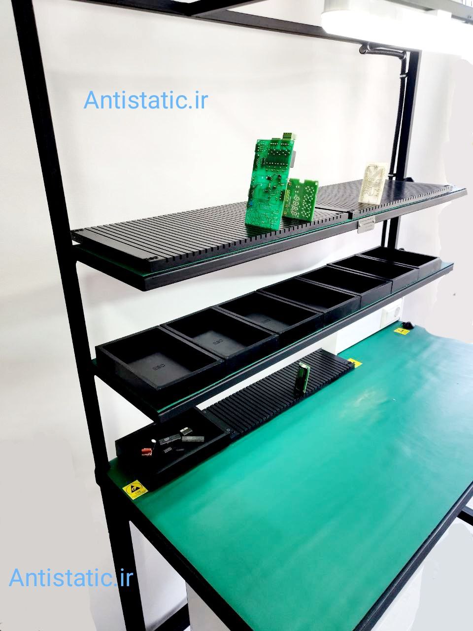 - تولید الکترونیک: این صنعت، اصلیترین مصرفکننده میزهای آنتی استاتیک است، زیرا قطعات میکروالکترونیک، نیمههادیها و بردهای مدار چاپی به شدت در برابر تخلیه الکترواستاتیک آسیبپذیر هستند.